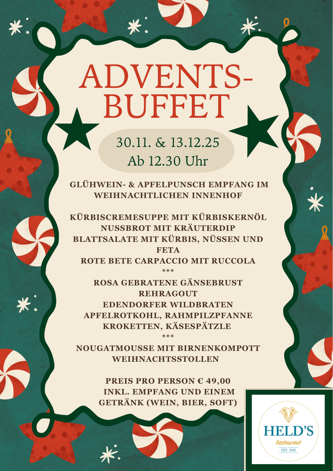 Vom 28.11. bis 30.12. öffnen wir unser Restaurant für private Feiern ab 20 Personen, wir freuen uns über Ihre Anfrage!