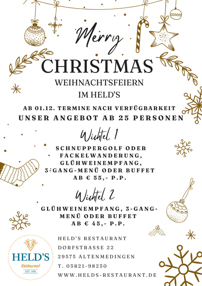 Vom 28.11. bis 30.12. öffnen wir unser Restaurant für private Feiern ab 20 Personen.